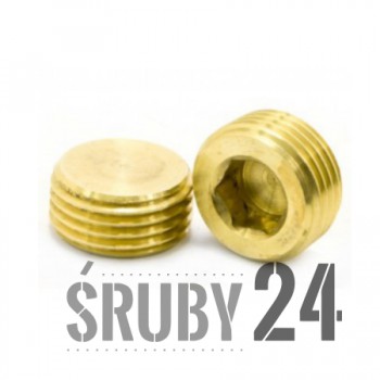 Korek gwintowany z gniazdem sześciokątnym z gwintem rurowym (imbus), wykonany z mosiądzu, spełniający normę DIN 906