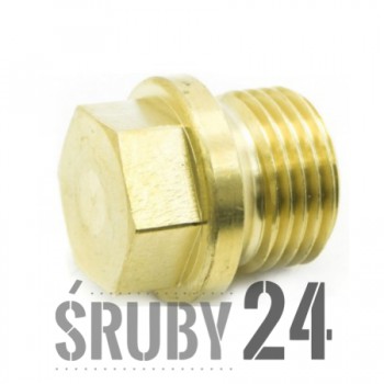Korek gwintowany z łbem sześciokątnym kołnierzem i gwintem rurowym, wykonany z mosiądzu, spełniający normę DIN 910