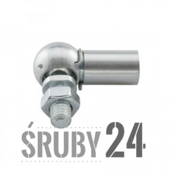 Przegub kulowy kątowy z zawleczką sprężystą, wykonany ze stali w ocynku galwanicznym białym, spełniający normę DIN 71802 CS