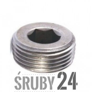 Korek gwintowany z gniazdem sześciokątnym (imbus), wykonany ze stali w ocynku płatkowym, spełniający normę DIN 906
